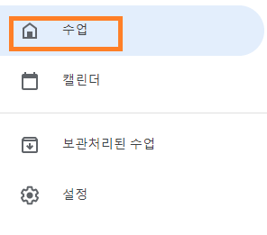 구글 클래스룸 초기 접속화면 좌측 상단에 줄 3개의 버튼 을 클릭하면 아래와 같은 화면이 나오는데 여기서 수업을 클릭해줍니다.