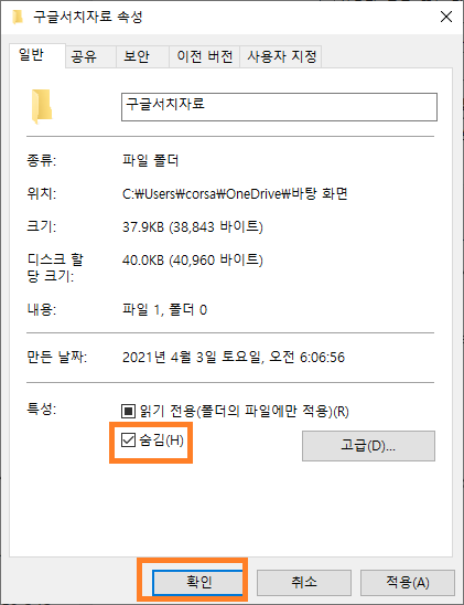 파일 또는 폴더 숨기기